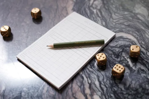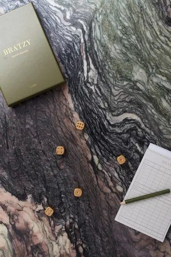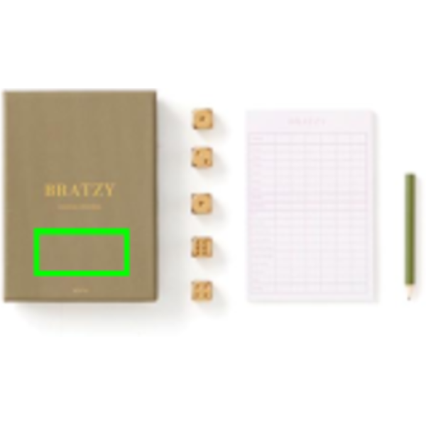 Ez a Yatzy elegáns csomagolásban! Arany dobókockákkal és egy ugyanilyen exkluzív ceruzával, a Yatzy-t Bratzy-ra nevezzük át. Ez a játék stílusos dobozban érkezik, rajta arany szöveggel ezáltal egyszerre szórakoztató elajándékozni és szép kiegészítőként használni a dohányzóasztalon.