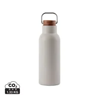 Elegáns és funkcionális kialakítású termoszpalack. Akácfából készült fedele fémhurokkal van ellátva, ami megkönnyíti a palack hordozását útközben. Az újrahasznosított rozsdamentes acélból készült, duplafalú vákuumpalack biztosítja, hogy a palack hosszú ideig megőrzi a hőmérsékletet, hideg és meleg italok esetén egyaránt. Az akác természetes fa anyag melyből kifolyólag árnyalati vagy színeltérések előfordulhatnak. Az RCS (Recycled Claim Standard) tanúsítvány garantálja az újrahasznosított anyagok ellátási láncát. A teljes újrahasznosított anyagtartalom a termék összsúlyán alapul. Ez a termék 76% RSC újrahasznosított rozsdamentes acélt tartalmaz. A palack könnyen tisztítható és csak kézzel szabad tisztítani. FSC® kraft csomagolásban.