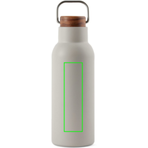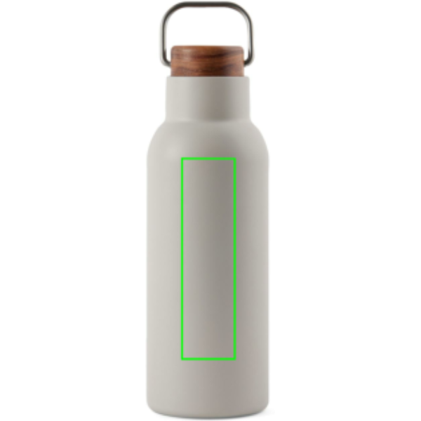 Elegáns és funkcionális kialakítású termoszpalack. Akácfából készült fedele fémhurokkal van ellátva, ami megkönnyíti a palack hordozását útközben. Az újrahasznosított rozsdamentes acélból készült, duplafalú vákuumpalack biztosítja, hogy a palack hosszú ideig megőrzi a hőmérsékletet, hideg és meleg italok esetén egyaránt. Az akác természetes fa anyag melyből kifolyólag árnyalati vagy színeltérések előfordulhatnak. Az RCS (Recycled Claim Standard) tanúsítvány garantálja az újrahasznosított anyagok ellátási láncát. A teljes újrahasznosított anyagtartalom a termék összsúlyán alapul. Ez a termék 76% RSC újrahasznosított rozsdamentes acélt tartalmaz. A palack könnyen tisztítható és csak kézzel szabad tisztítani. FSC® kraft csomagolásban.