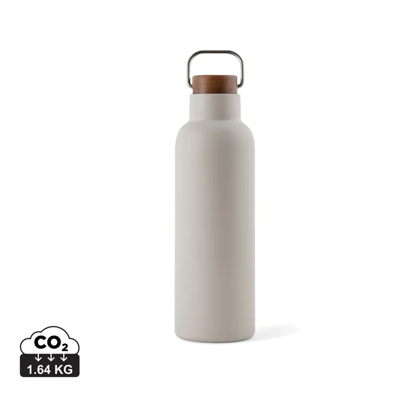 Elegáns és funkcionális kialakítású termoszpalack. Akácfából készült fedele fémhurokkal van ellátva ami megkönnyíti a palack hordozását útközben. Az újrahasznosított rozsdamentes acélból készült, duplafalú vákuumpalack biztosítja, hogy a palack hosszú ideig megőrzi a hőmérsékletet, hideg és meleg italok esetén egyaránt. Az akác természetes fa anyag melyből kifolyólag árnyalati vagy színeltérések előfordulhatnak. Az RCS (Recycled Claim Standard) tanúsítvány garantálja az újrahasznosított anyagok ellátási láncát. A teljes újrahasznosított anyagtartalom a termék összsúlyán alapul. Ez a termék 79% RSC újrahasznosított rozsdamentes acélt tartalmaz. A palack könnyen tisztítható és csak kézzel szabad tisztítani. FSC® kraft csomagolásban.