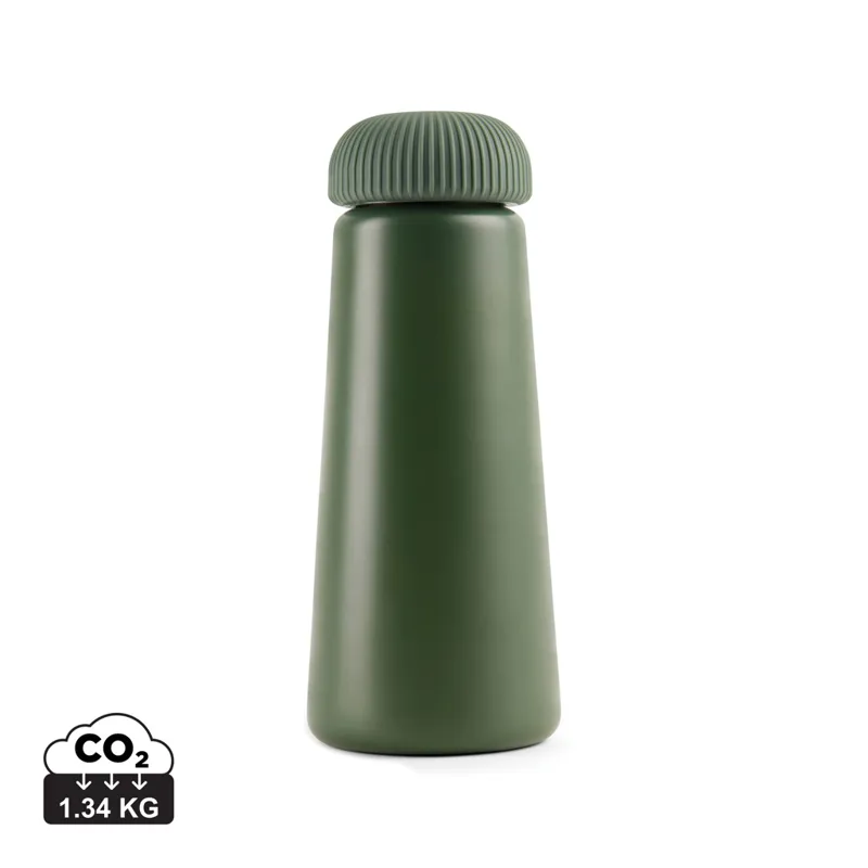 Átgondolt kialakítású palack, egyedi kúp alakú és fogásbarát fedéllel a könnyű kezelés érdekében. A részletekre való aprólékos odafigyeléssel készült, a formát és a funkciót egyaránt ötvözi. A duplafalú, újrahasznosított, rozsdamentes acél vákuumpalack akár 15 órán keresztül hűtve vagy akár 6 órán keresztül melegen tartja az italokat. Az RCS újrahasznosított acélpalack kiemeli elkötelezettségünket a felelős beszerzés iránt. Újrahasznosított anyag tartalom: 75% a termék összsúlya alapján. Az RCS-tanúsítvány biztosítja az újrahasznosított anyagok ellátási láncát. FSC® kraft csomagolásban.