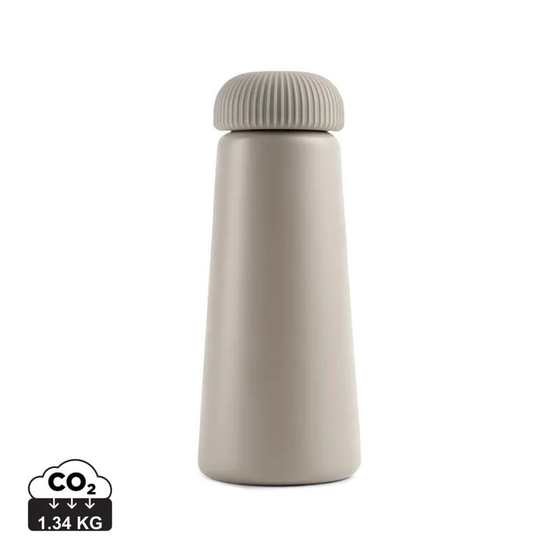 Átgondolt kialakítású palack, egyedi kúp alakú és fogásbarát fedéllel a könnyű kezelés érdekében. A részletekre való aprólékos odafigyeléssel készült, a formát és a funkciót egyaránt ötvözi. A duplafalú, újrahasznosított, rozsdamentes acél vákuumpalack akár 15 órán keresztül hűtve vagy akár 6 órán keresztül melegen tartja az italokat. Az RCS újrahasznosított acélpalack kiemeli elkötelezettségünket a felelős beszerzés iránt. Újrahasznosított anyag tartalom: 75% a termék összsúlya alapján. Az RCS-tanúsítvány biztosítja az újrahasznosított anyagok ellátási láncát. FSC® kraft csomagolásban.