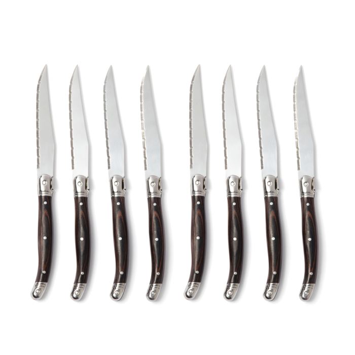 Kiváló minőségű húskések tipikus francia ihletésű bisztró stílusban. Fekete pakkafa markolat és kiváló minőségű rozsdamentes acél pengék. A penge finom reszelője lehetővé teszi, hogy a lehető legkevesebb ellenállással szelje fel az ételt. Négy késből álló készlet, könnyen párosítható az otthoni villákkal. Exkluzív ajándékdobozban.
