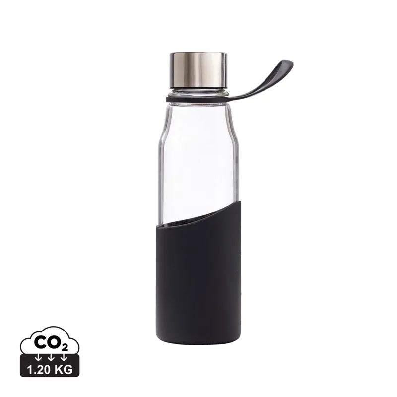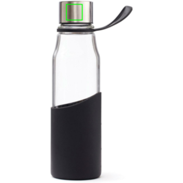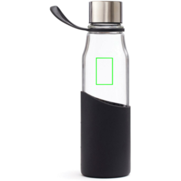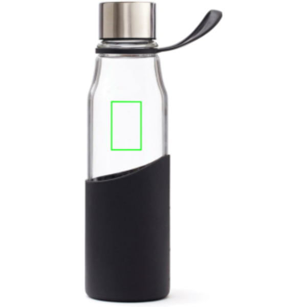 Szilikonhüvellyel ellátott, elegáns üvegből készült vizespalack. A hüvely kellemes fogást biztosít, és védi a palackot a külső behatásoktól. Egyszerű és stílusos kialakítás. A palack boroszilikát üvegből készült, egy olyan üvegtípusból, amely ellenállóbb a hőhatással szemben, mint a közönséges üveg. A boroszilikát egy rendkívül tartós és minőségi anyag, amely tartós és ellenáll a legtöbb ütésnek.