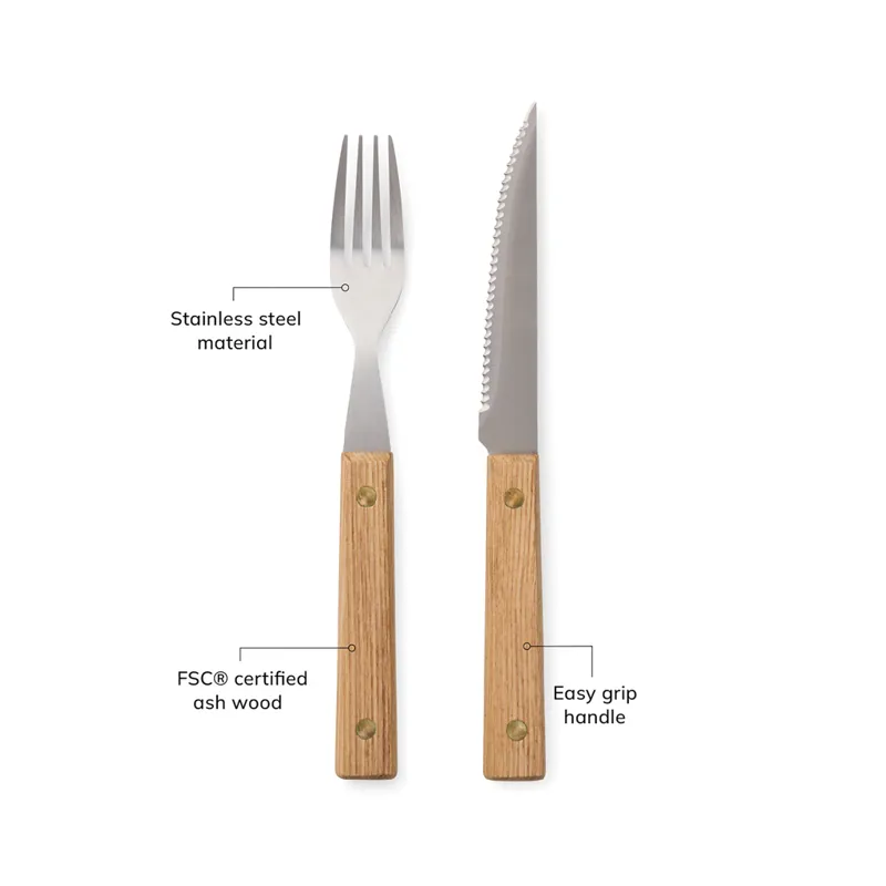 Terítse meg az asztalt ezzel a skandináv egyszerűség jegyében tervezett, időtálló, 8 darabos BBQ étkészlettel. Az FSC® kőrisfából és kiváló minőségű rozsdamentes acélból készült készlet négy éles kést és négy villát tartalmaz, kényelmes markolattal. Ezt a készletet nem csak öröm használni, de stílusos kiegészítője is minden grillezésnek vagy étkezési élménynek.