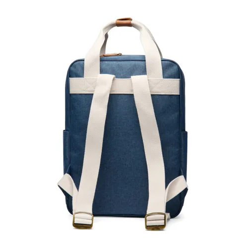 Klasszikus, mégis finoman sportos hátizsák, amely RCS újrahasznosított poliészterből készült és kontrasztos alkotóelemekkel van díszítve. Egy kényelmes elülső cipzáras zsebbel és két nyitott oldalzsebbel a könnyű hozzáférés érdekében. A tágas fő rekesz belsejében egy kisebb zseb található, amelyet a könnyű rendszerezéshez terveztek. Az antik sárgaréz fém alkotóelemek kifinomultságot kölcsönöznek. Az RCS (Recycled Claim Standard) tanúsítvány garantálja az újrahasznosított anyagok ellátási láncát. A teljes újrahasznosított anyagtartalom a termék összsúlyán alapul. 10% RCS újrahasznosított poliésztert tartalmaz.