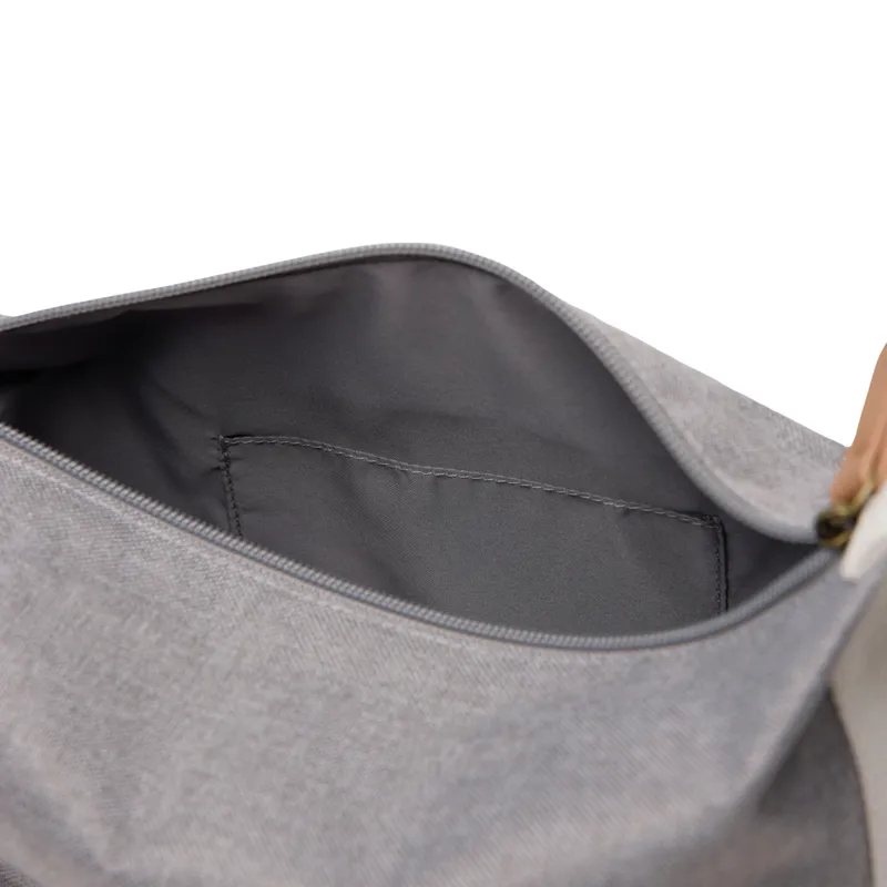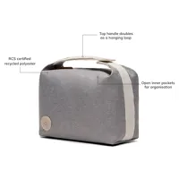 Egyszerű, mégis stílusos. Az RCS újrahasznosított poliészterből készült, kontrasztos alkotóelemekkel díszített táska a praktikumot és a kifinomult dizájnt ötvözi. A bepattintó gombbal rögzített felső fogantyú kényelmes akasztóhurokként is funkcionál. A tetején található egyenletes cipzár könnyű hozzáférést biztosít a fő rekeszhez, míg a nyitott belső zsebben rendszerezetten tarthatja a legfontosabb dolgokat. Az RCS (Recycled Claim Standard) tanúsítvány garantálja az újrahasznosított anyagok ellátási láncát. A teljes újrahasznosított anyagtartalom a termék összsúlyán alapul. 12% RCS újrahasznosított poliésztert tartalmaz.