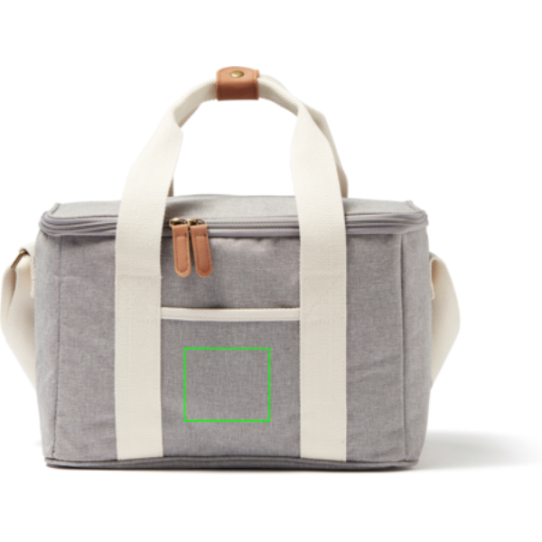 A tökéletes hűtőtáska, árnyalatról árnyalatra foltos műbőr és pamut részletekkel. Külső részén egy kis rekesz is található ami más tárgyaknak is helyet biztosít. A vastag PEVA párnázás biztosítja, hogy a hideg hosszú ideig megmaradjon. Használat után is könnyen tisztítható és szárítható. Az állítható vállpántnak és a dupla fogantyúnak köszönhetően többféle módon is hordozható.
