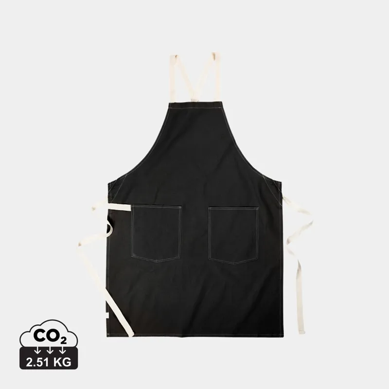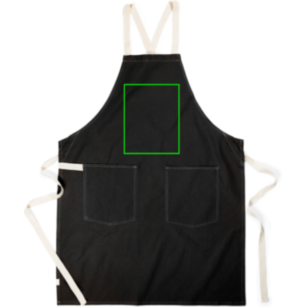70% tanúsítottan újrahasznosított pamutból készült kötény a beszállítók pamuthulladékából. Az általában használhatatlannak tartott szálak megfelelő gyártási eljárással elérték a kívánt tulajdonságokat. Ez a kötény rendkívül széles a maximális védelem érdekében. Két nagy elülső zseb és egy hurok evőeszközök vagy konyharuhák felakasztására.