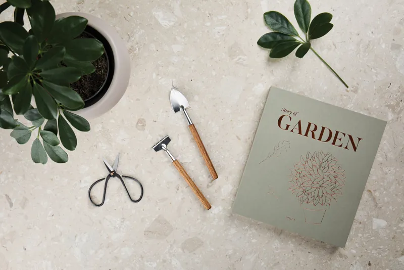 Fedezze fel a beltéri kertészkedés varázslatos világát a Story of garden készlettel, amely egy klasszikus könyvre emlékeztető ajándékdobozban érkezik. Egy gereblyét és egy rozsdamentes acélból és akácfából készült ásót tartalmaz, valamint egy pár klasszikus, erős vasból készült fűszernövény ollót. Ezek az eszközök megkönnyítik a szobanövények gondozását. Az egyedi csomagolás nemcsak védi a szerszámokat, hanem egy magával ragadó történetet is elmesél, így tökéletes ajándék a növények szerelmeseinek. Az ajándékdoboz FSC® papírból készült.