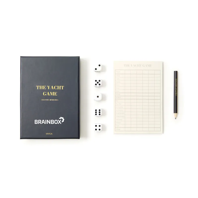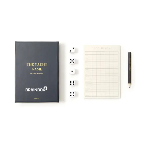 Full house, négy egyforma, vagy yatzy? Ez egy öt dobókockás játék, elegáns dobozban, aranyszínű szöveggel díszítve. A szép ajándékdoboznak köszönhetően igényes ajándék és a dohányzóasztal szép kiegészítőjeként is használható.*A készlet átalakítás alatt: Yahtzee névről Yacht névre változtatjuk a játékot adatbázisunkban. A termék és funkciói 100%-ban ugyanazok maradnak, kizárólag a termék nevében lép fel változás a bejövő készletre.