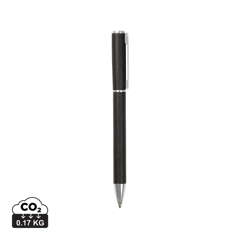Elegáns íróeszköz csavarható mechanizmussal és Dokumental alapú kék tintával, körülbelül 1200 méter íráshosszal és 1,0 mm írásszélességel. Újrahasznosított alumínium bevonattal a tolltesten, sárgaréz alkotóelemekből valamint PU anyagból készült. A Timo széria RCS újrahasznosított anyagokból készült minimalista íróasztali kiegészítőket kínál amik elegáns dizájnnal ötvözik a modern munkahelyi esztétikát. Az RCS (Recycled Claim Standard) tanúsítvány garantálja az újrahasznosított anyagok ellátási láncát. A teljes újrahasznosított anyagtartalom a termék összsúlyán alapul. 27% RCS újrahasznosított alumíniumot tartalmaz.