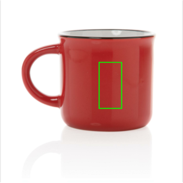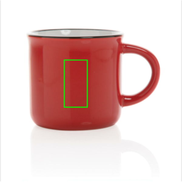 Kerámia bögre hosszan tartó használatra. Vintage külsővel, ívelt fogóval. A termék mosogatógépbe rakható valamint megfelel az EN12875-1 szabályozásnak (legalább 125 mosás) minden emblémázási mód esetén. Ajándékdobozban. Űrtartalma 280ml.