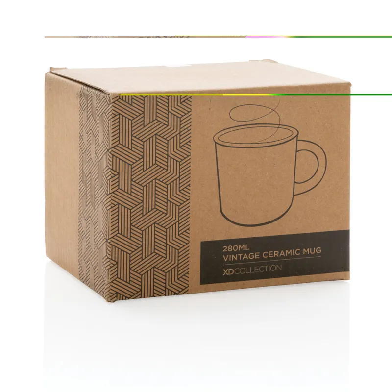 Kerámia bögre hosszan tartó használatra. Vintage külsővel, ívelt fogóval. A termék mosogatógépbe rakható valamint megfelel az EN12875-1 szabályozásnak (legalább 125 mosás) minden emblémázási mód esetén. Ajándékdobozban. Űrtartalma 280ml.