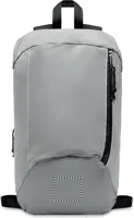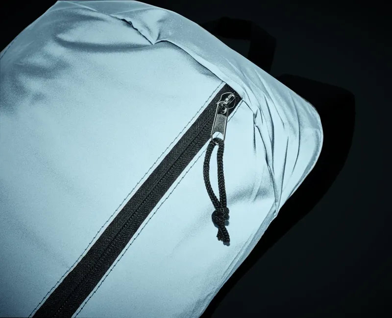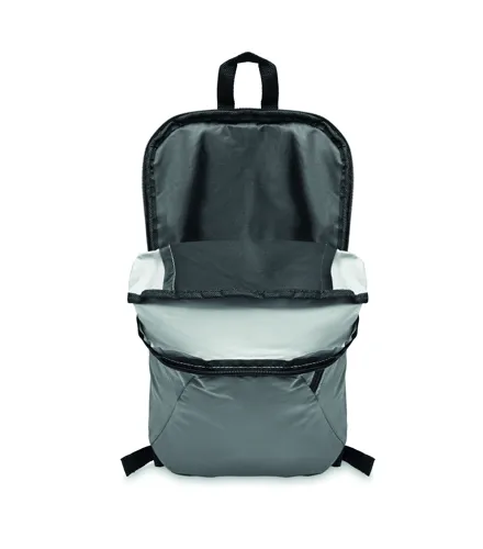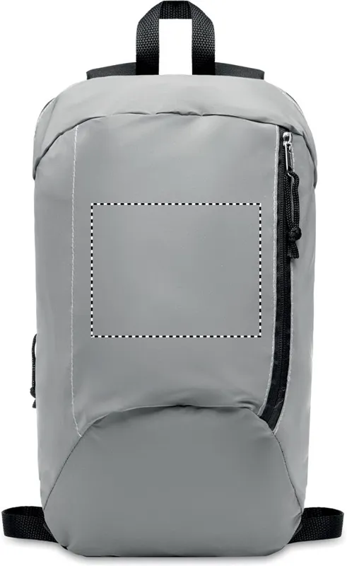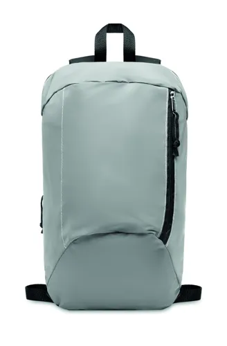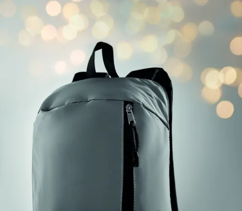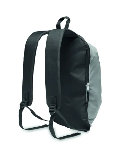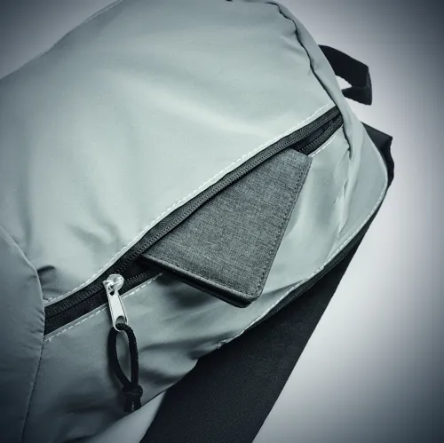 HHátizsák az elülső oldalán magas fényvisszaverő képességű poliészterből, cipzáras külső zsebbel és a kényelem érdekében párnázott 600D poliészter hátrésszel.
