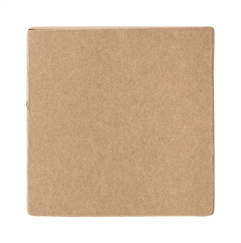 100 db egyedi gyártású, négyzet alakú névjegykártya, mindkét oldalon full-colour nyomtatott grafikával. Matt kraft papír, 300 g/m². Kraft papír dobozban.