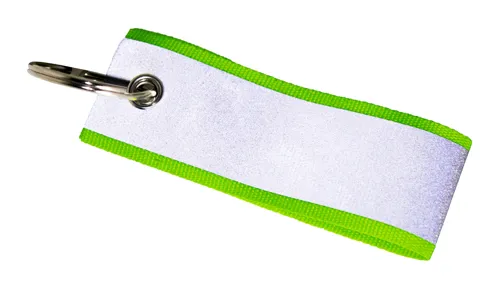 Fényvisszaverő kulcstartó poliészter pánttal és fém karikával. A termék kizárólag promóciós célra alkalmas, nem minősül egyéni védőfelszerelésnek.