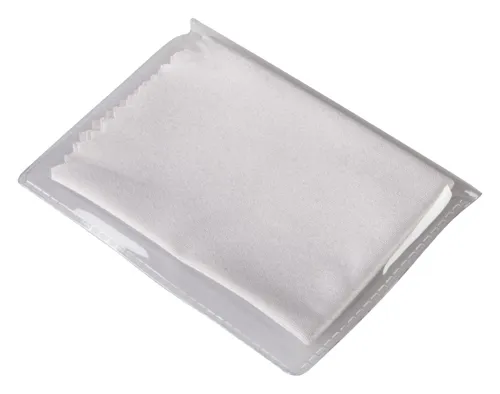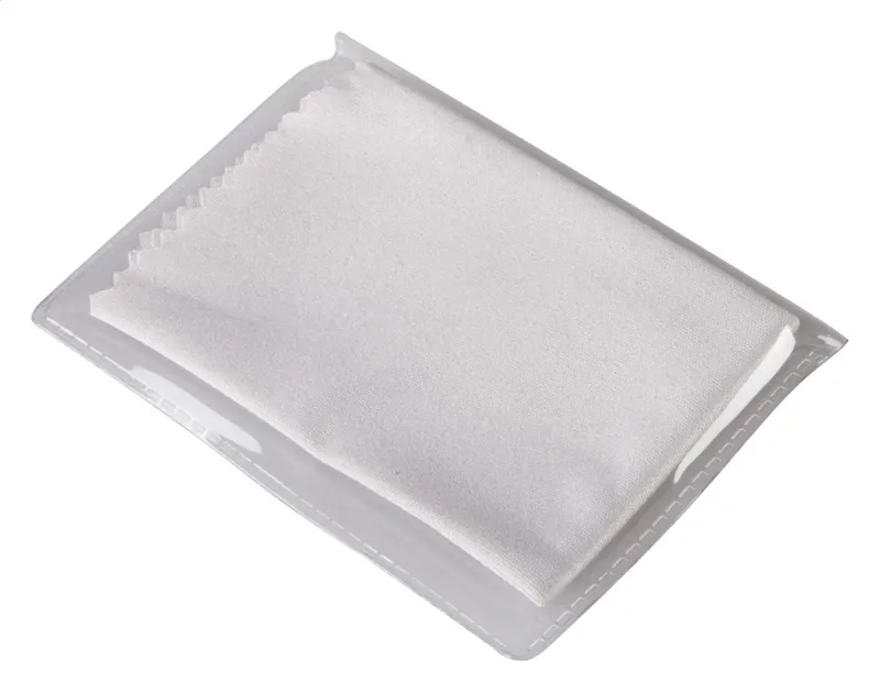 Mikroszálas szemüvegtörlő kendő, PVC tokban. Mikroszálas poliészter 230 g/m². Törlőkendő mérete: 150×150 mm.