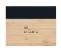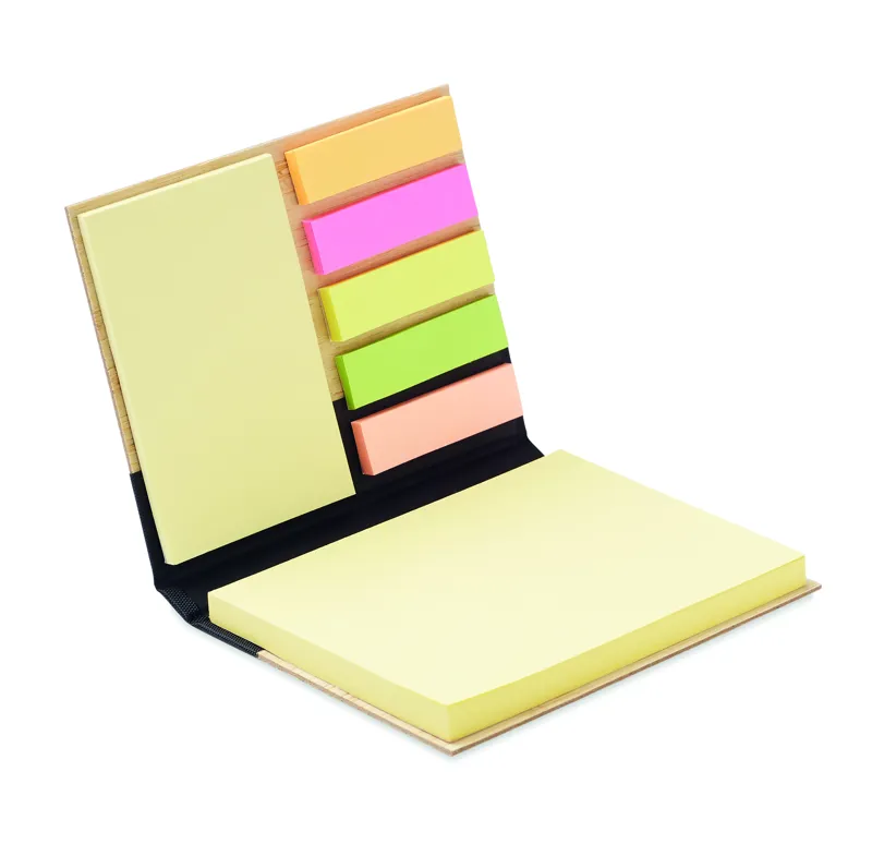 3 különböző típusú öntapadós jegyzetelő bambuszborítással. Egy nagyszerű irodai alapdarab, amibe az összes fontos jegyzetét felírhatja. Így szervezetten dolgozhat, és nem feledkezhet el egy határidőről sem. Nagy és közepes méretű sárga öntapadós jegyzettömböket és 5 különböző színű lapjelölőt tartalmaz. A bambuszborítás természetes megjelenést kölcsönöz a jegyzettömbnek. A bambusz természetes anyag, termékenként szín- és méretbeli eltérések jelentkezhetnek, ami befolyásolhatja a dekoráció végső eredményét. Méret: 8x10,5 cm. FSC®-certified | FSC MIX, P7.7, FSC-C213206