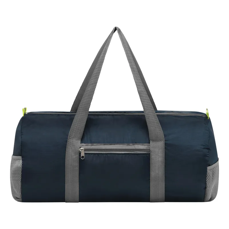 VOLUNTEER GYM sporttáska, összehajtható: cipzáras első zseb, cipzáras fő rekesz két db fényvisszaverő címkével, 2 db hálós zseb az oldalán, 2 db hosszú fül – kis tasakba összehajtható kivitel, így kézitáskában is hordható