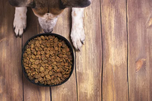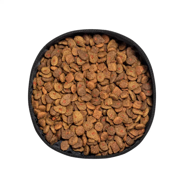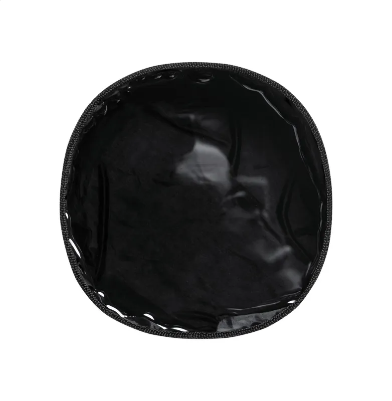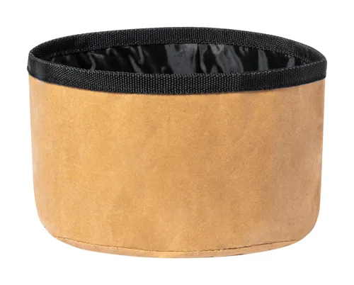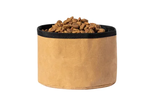 Összehajtható kutyatál, laminált újrahasznosított papírból és RPET poliészterből.