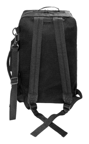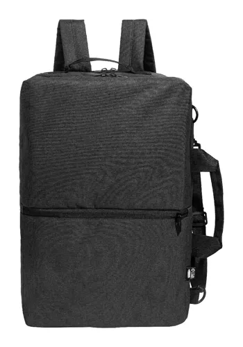 Kétfunkciós RPET dokumentum hátizsák cipzáras rekesszel, 2 cipzáras elülső zsebbel és párnázott laptop rekesszel (15"). Párnázott hátrésszel és vállpántokkal. Tartalmaz egy további levehető vállpántot, amely irattáskaként is használható. 600D RPET poliészter, megkülönböztető RPET címkével.