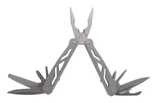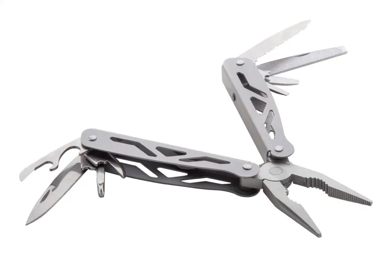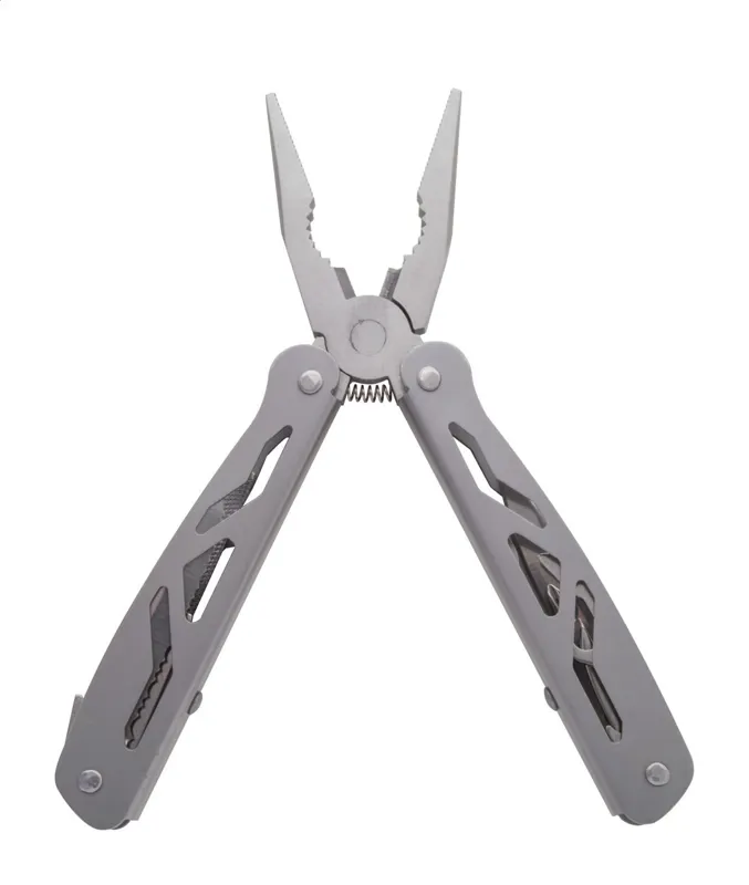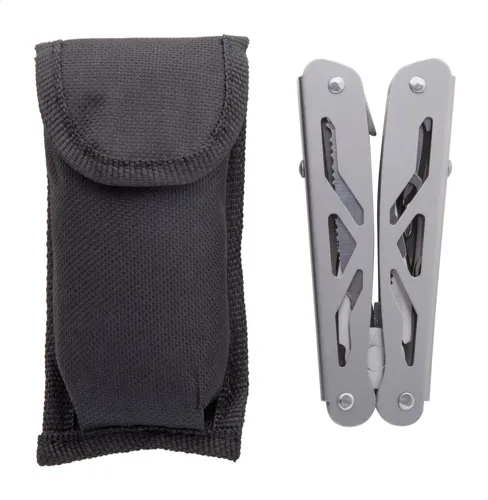 Rozsdamentes acél multiszerszám 9 funkcióval, poliészter tokban.