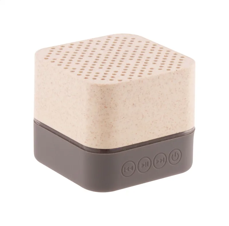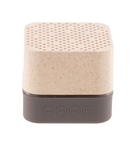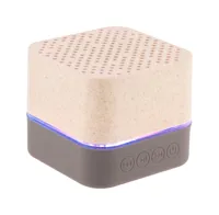 Vezeték nélküli hangszóró környezetbarát búzaszalma műanyag borítással, gumis alsó résszel, többszínű LED világítással és beépített újratölthető akkumulátorral. Micro SD lejátszóval és kihangosító funkcióval. USB töltőkábellel szállítjuk.