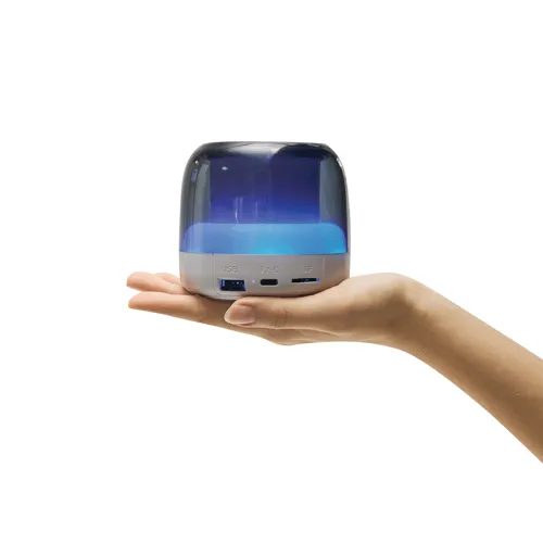 WHITE OYSTER vezeték nélküli hangszóró: színváltó lámpa 7 különböző színnel, valamint állandó világítással, a világítás kikapcsolható, zenei teljesítmény 5 watt, kb. 10 m hatótávolság, mobiltelefonnal párosítható, Bluetooth® kompatibilis, töltőkábellel (kb. 50 cm, USB Type-C), microSD foglalat és USB Type-A az MP3 funkcióhoz, töltés C típusú USB-n keresztül, kihangosító funkció, bemeneti teljesítmény: 5V/1A, beépített újratölthető akkumulátor 800 mAh-val , csúszásmentes talppal