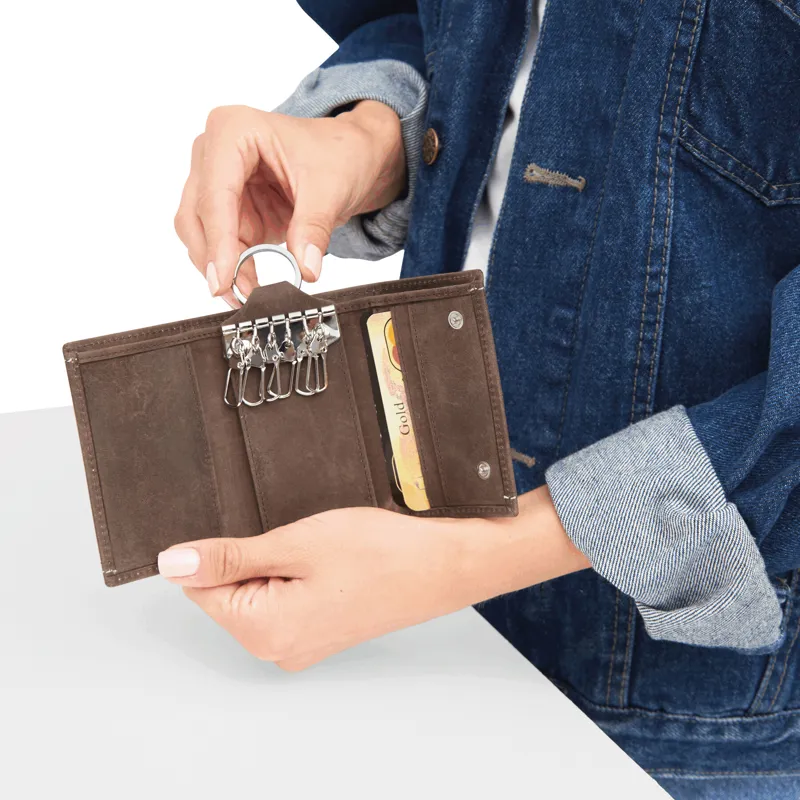 WILD STYLE III valódi bőr kulcstartó: 1 nagy kulcskarika, 6 db kis kulcstartó horog, 4 db becsúsztatós zseb bankkártyák és névjegykártyák számára, 1 zseb bankjegyek számára, 2 db patentos zár