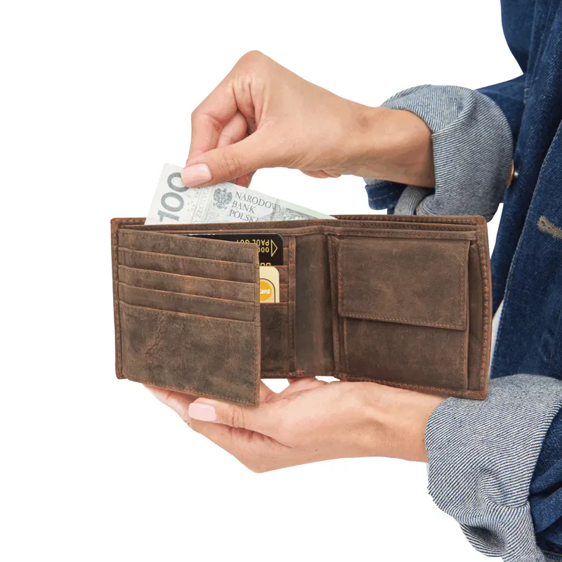 WILDERNESS I valódi bőr pénztárca: 8 db kártyatartó zseb, 2 rekesz bankjegyek számára, 1 db aprópénztartó, 1 db hálós zseb igazolványok számára, 2 db további zseb