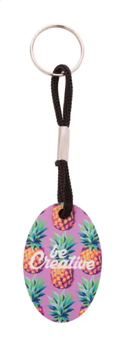 Ovális, rétegelt nyírfából készült kulcstartó színes poliészter zsinórral és full colour emblémázással. Az ár tartalmazza az UV LED emblémázást a termék egyik oldalán. Minimális rendelési mennyiség: 200 db.