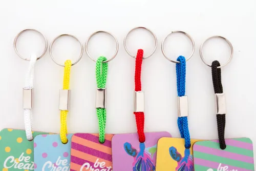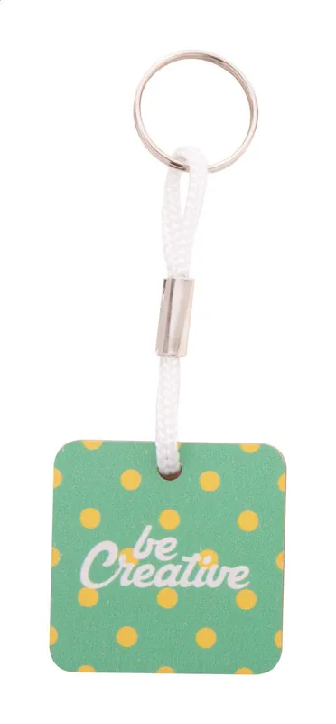 Négyzet alakú, rétegelt nyírfából készült kulcstartó színes poliészter zsinórral és full colour emblémázással. Az ár tartalmazza az UV LED emblémázást a termék egyik oldalán. Minimális rendelési mennyiség: 200 db.