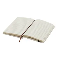 WRITER jegyzetfüzet: DIN A6-os méretben, lekerekített sarkokkal, gumipánttal záródik, beépített könyvjelzővel, vászon szerű felülettel, 80 lapos, vonalas, a papír 70g/m²