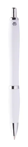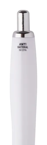 Antibakteriális műanyag testű golyóstoll króm részekkel. Nano ezüst adalékanyagot tartalmaz, megakadályozva a baktériumok szaporodását a toll testén. Nyomómechanizmussal működik és kék tollbetéttel szállítjuk. ISO 22196 szabványnak megfelel.