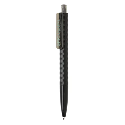 Egyedülálló golyóstoll, amelyet gyémántmintája különböztet meg. Tökéletes a márkaüzenet közvetítésére. Kb. 1200 m íráshosszra elegendő német Dokumental® kék tintás utántöltő TC-golyóval a rendkívül egyenletes íráshoz. 54% újrahasznosított ABS-ből készült, fenntarthatósági tanúsítvánnyal.