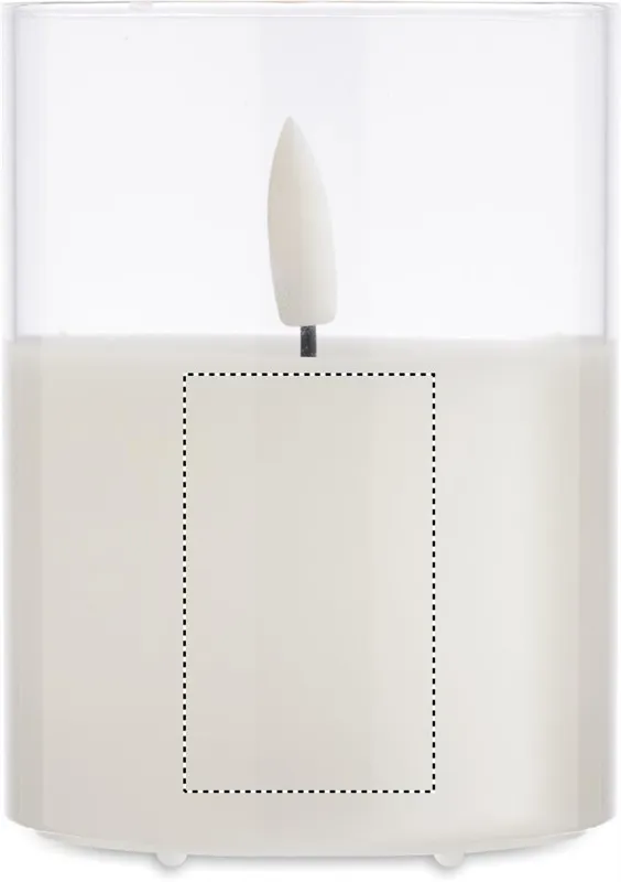 LED-es viaszgyertya üvegtartóban, valós lánghatással. 2 db AA elemmel működik, elem nélkül szállítjuk.