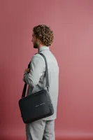 A klasszikus fekete XD Design 16"-es laptop táska a stílus és a funkcionalitás megtestesítője az igényes szakemberek számára. A 100% Aware™ rPET 1200D szövetből, vízlepergető felülettel aprólékosan kidolgozott, elegáns táska a kifinomultság és a praktikum tökéletes elegyét kínálja. Legyen szó üzleti találkozóról, utazásról vagy napi ingázásról, sokoldalúságot és megbízhatóságot biztosít. Levehető vállpánttal és külső zsebbel a legfontosabb dolgok gyors eléréséhez. A hideg szürke, 5C gyapjú bélés mintás varrással gondoskodik laptopja biztonságáról és kényelméről. A fenntarthatóságot szem előtt tartva készült XD Design 16"-es laptop táska a környezettudatosságot tükrözi. Az AWARE™ nyomjelző és blokklánc technológia garantálja az eredeti újrahasznosított szövetanyagok használatát és kevesebb víz felhasználását.