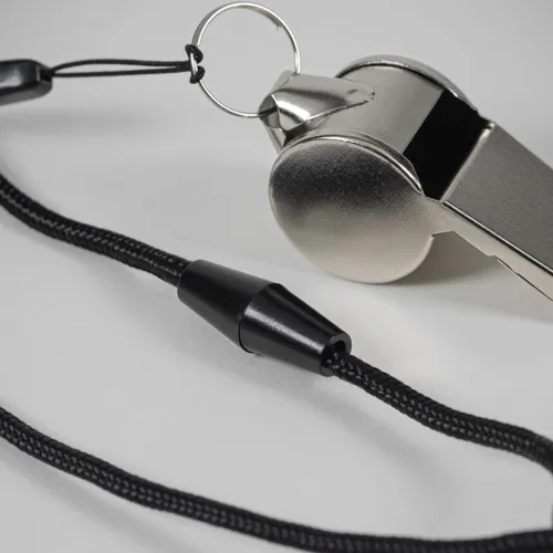 Fém síp nyakpánttal, biztonsági oldózárral.