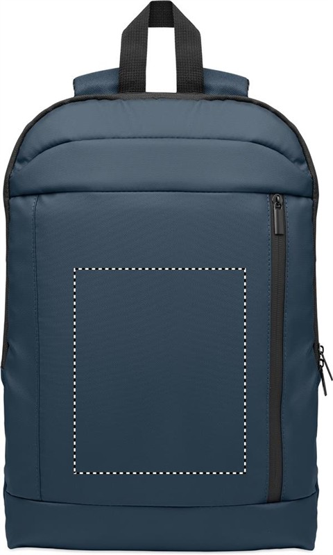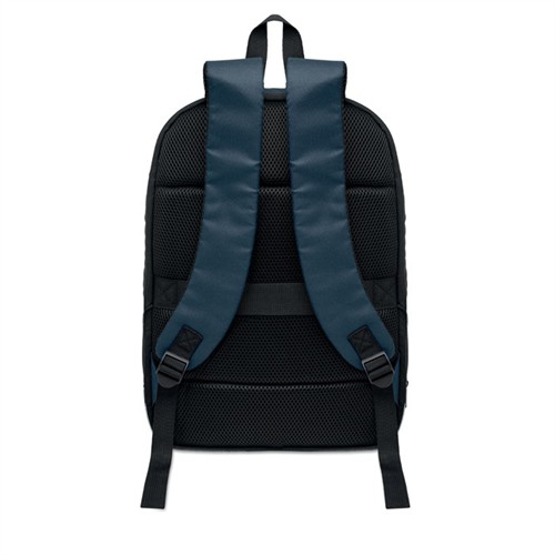 Bővíthető, 600D RPET poliészterből készült 16 colos laptop hátizsák PU bevonattal az elején, RPET poliészter béléssel. Rejtett cipzáras zseb és párnázott laptop rekesz, elülső rekesz, hálós hátoldal és gurulós bőröndre illeszkedő pánt.