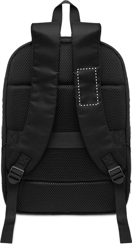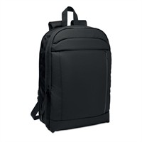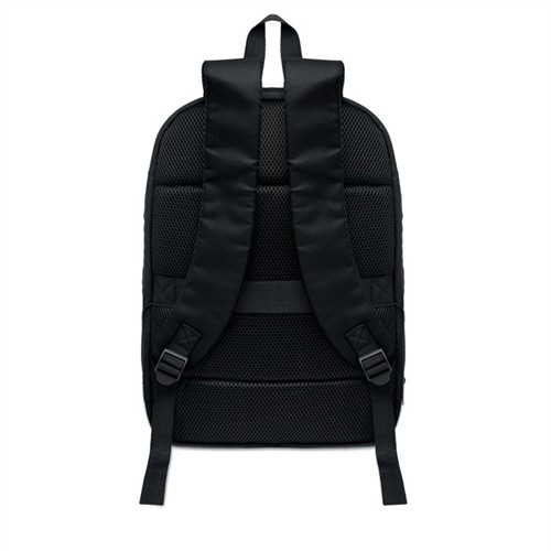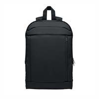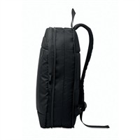Bővíthető, 600D RPET poliészterből készült 16 colos laptop hátizsák PU bevonattal az elején, RPET poliészter béléssel. Rejtett cipzáras zseb és párnázott laptop rekesz, elülső rekesz, hálós hátoldal és gurulós bőröndre illeszkedő pánt.