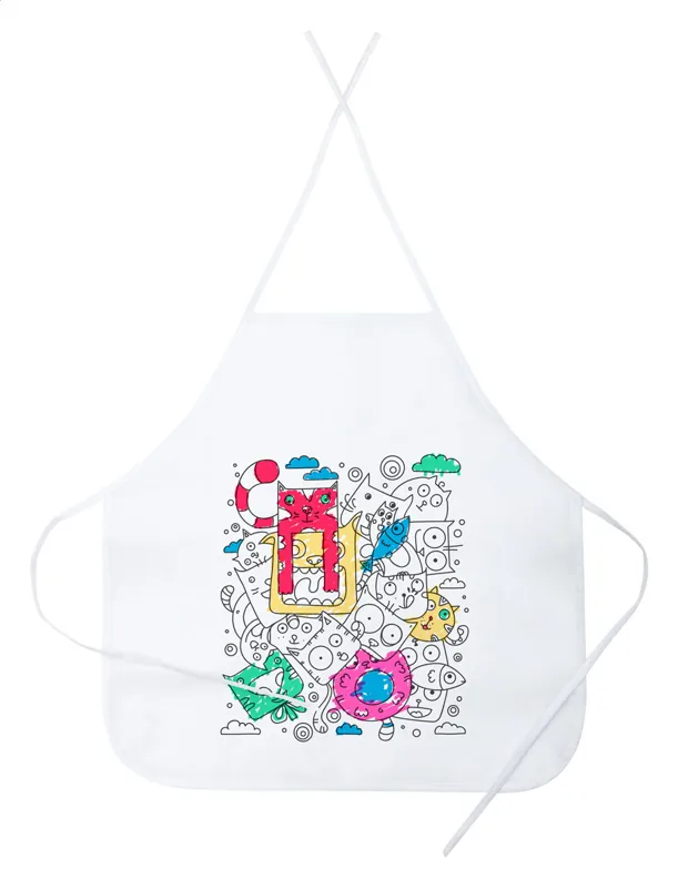 Non-woven anyagból készült színezhető gyerek kötény, 5 db színes filctollal.
