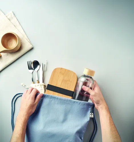 YUKI COLOUR Biopamut húzózsinóros táska világoskék