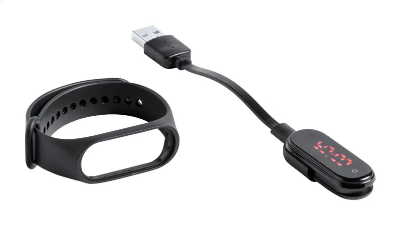 Hőmérő karpánt 0,96" LED kijelzővel és TPU szíjjal. USB töltőkábellel szállítjuk.