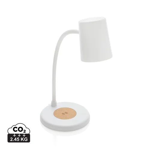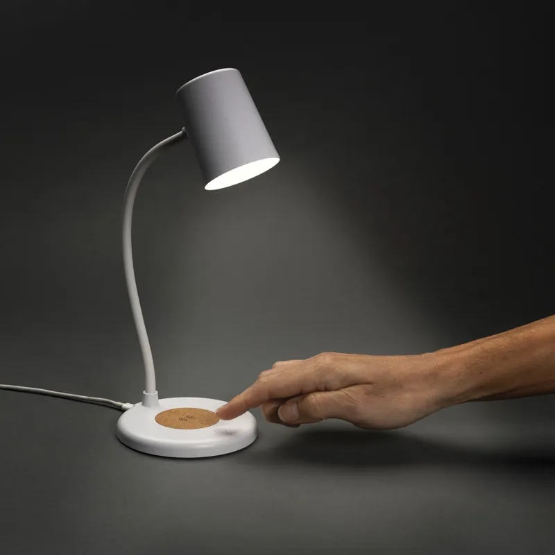 Ultragyors 15 W-os vezeték nélküli töltő integrált asztali lámpával. A rugalmas asztali lámpa 55 lument biztosít és 3 fénymóddal rendelkezik (meleg, fehér és hibrid) RCS újrahasznosított ABS-ből, újrahasznosított PC-ből és FSC parafából készült. A vezeték nélküli töltő az Android legújabb generációival, iPhone 8 és újabb verziókkal kompatibilis. A termék és tartozékai PVC-mentesek. 120 cm-es C típusú töltőkábellel RCS újrahasznosított TPE-ből. FSC® mix kraft dobozban.. C típusú bemenet; Bemenet 5 V/2 A; 9 V/2 A; 12 V/1,5 A; Vezeték nélküli kimenet 5 V/1 A; 9 V/1,1 A; 9 V/1,67 A (15 W) Teljes újrahasznosított anyagtartalom: 36% a termék összsúlya alapján. Az RCS-tanúsítvány biztosítja az újrahasznosított anyagok ellátási láncát.