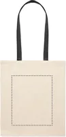 Pamut bevásárlótáska színes hosszú fülekkel. 140 g vastag anyag. Ez a bevásárlótáska tökéletes a napi vásárláshoz vagy egyéb bevásárlásokhoz. Különböző színű fülekkel kapható. Hordja a táskát a vállán, ha nehéz, és hogy a keze szabad maradjon. Teherbírás: 2,5 kg.