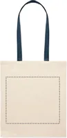 Pamut bevásárlótáska színes hosszú fülekkel. 140 g vastag anyag. Ez a bevásárlótáska tökéletes a napi vásárláshoz vagy egyéb bevásárlásokhoz. Különböző színű fülekkel kapható. Hordja a táskát a vállán, ha nehéz, és hogy a keze szabad maradjon. Teherbírás: 2,5 kg.