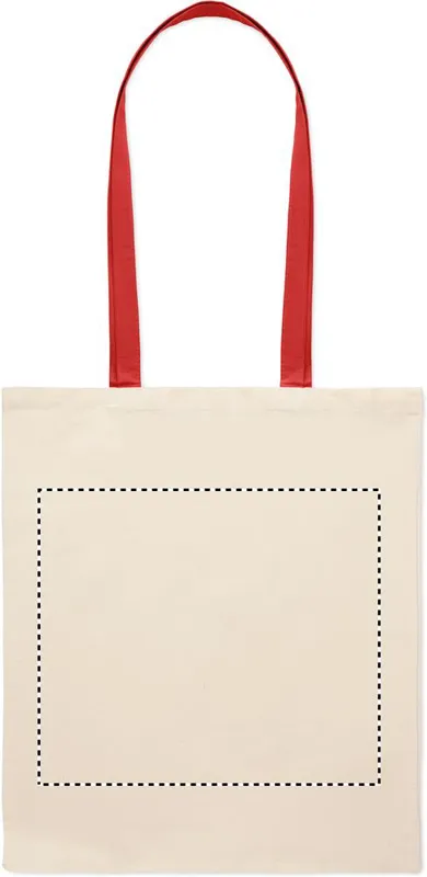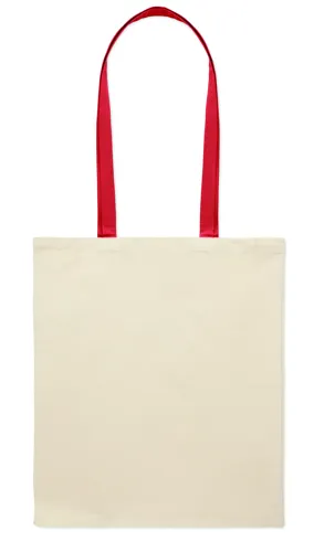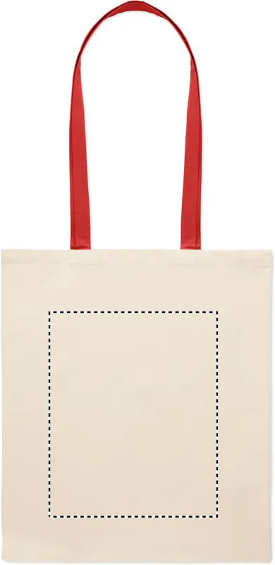 Pamut bevásárlótáska színes hosszú fülekkel. 140 g vastag anyag. Ez a bevásárlótáska tökéletes a napi vásárláshoz vagy egyéb bevásárlásokhoz. Különböző színű fülekkel kapható. Hordja a táskát a vállán, ha nehéz, és hogy a keze szabad maradjon. Teherbírás: 2,5 kg.