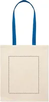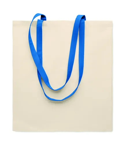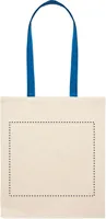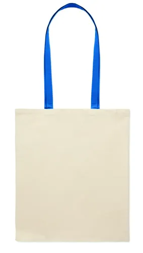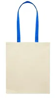 Pamut bevásárlótáska színes hosszú fülekkel. 140 g vastag anyag. Ez a bevásárlótáska tökéletes a napi vásárláshoz vagy egyéb bevásárlásokhoz. Különböző színű fülekkel kapható. Hordja a táskát a vállán, ha nehéz, és hogy a keze szabad maradjon. Teherbírás: 2,5 kg.