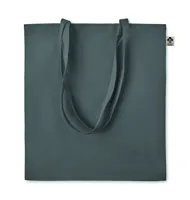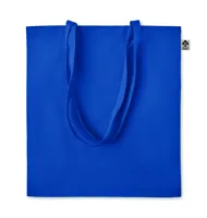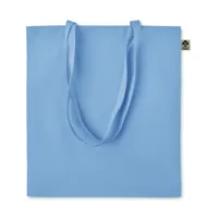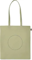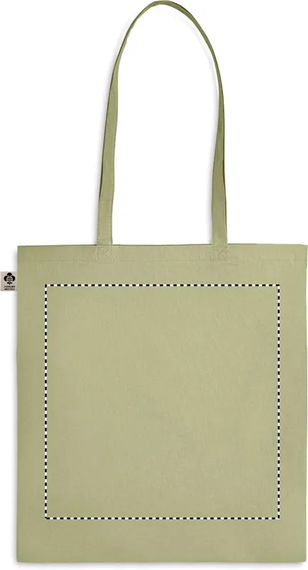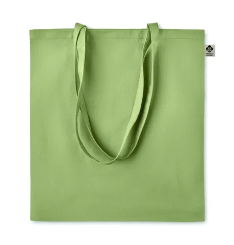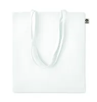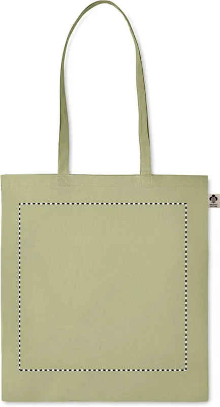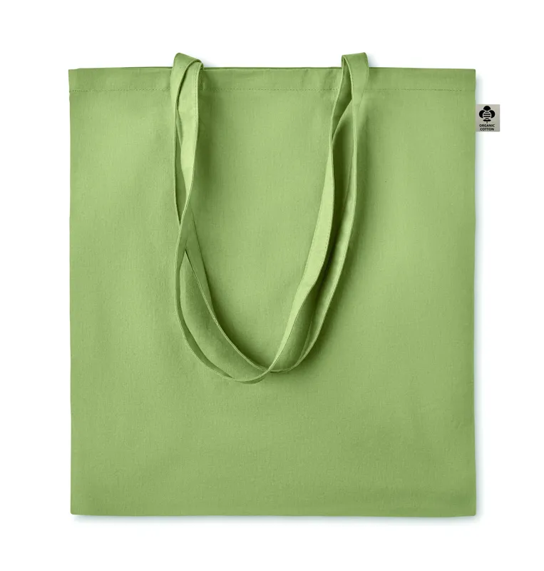 Organikus pamut bevásárlótáska, hosszú fülekkel. Klasszikus bevásárlótáska szabással, a napi élelmiszerek vagy egyéb tárgyak szállítására készült. A hosszú fülekkel kézben vagy vállon is hordható. 140 g. vastag, 100%-ben természetes organikus pamutból.